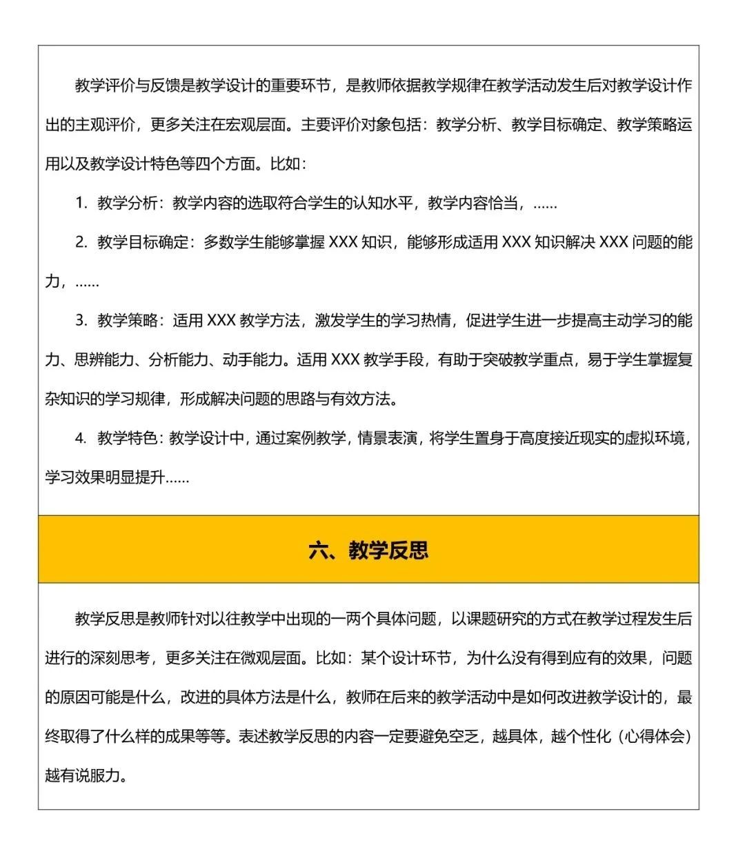 教学评价与反馈是教学设计的重要环节,是教师依据教学规律在教学活动发生后对教学设计作出的主观评价,更多关注在宏观层面。主要评价对象包括:教学分析、教学目标确定、教学策略运用以及教学设计特色等四个方面。比如 ;