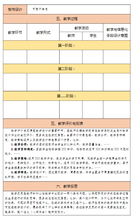 5.设计思路是“教学实施报告”中的主要阐述内容,应注意详略得当,一般表述与重点表述要按权重作差别化表述。切忌面面俱到。