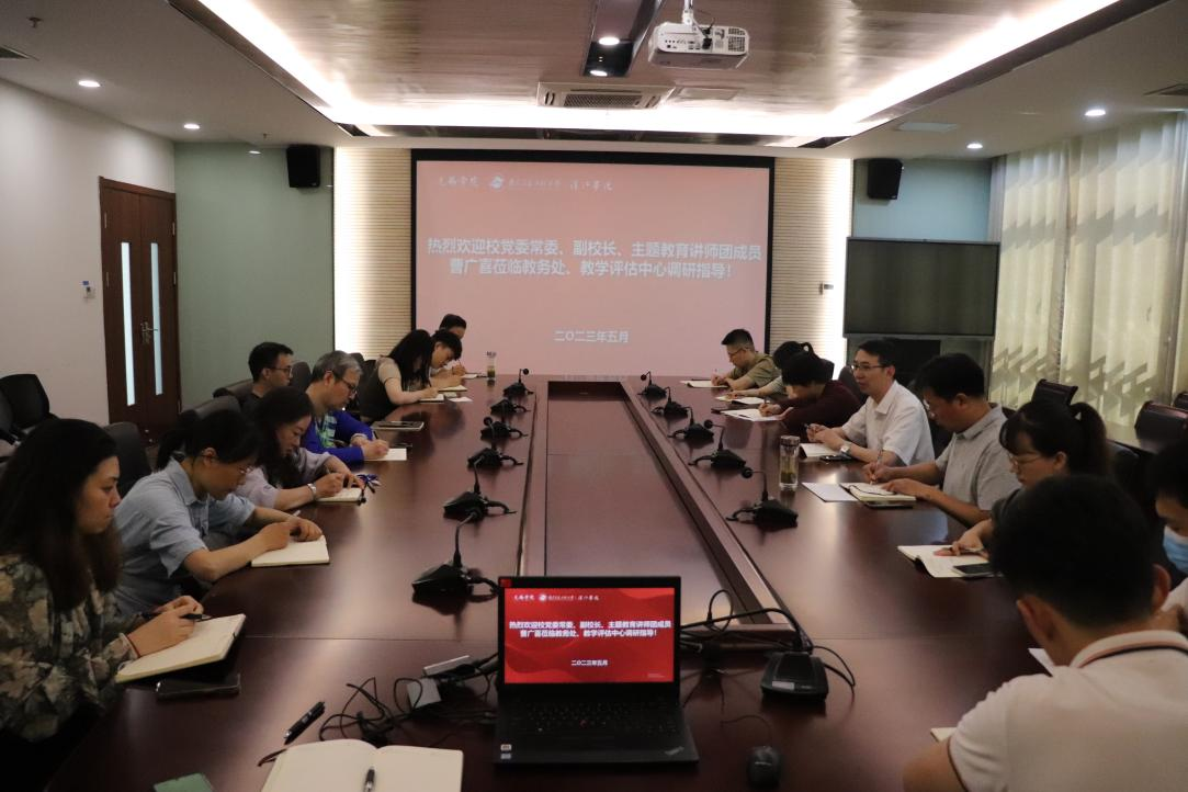 为推动深入学习贯彻习近平新时代中国特色社会主义思想主题教育,用好“调查研究”传家宝,5月29日,校党委常委、副校长曹广喜深入教务处、教学评估中心开展调研,把脉问诊教学质量提升,调研会由教务处处长钱承山主持,教务处全体人员参加。