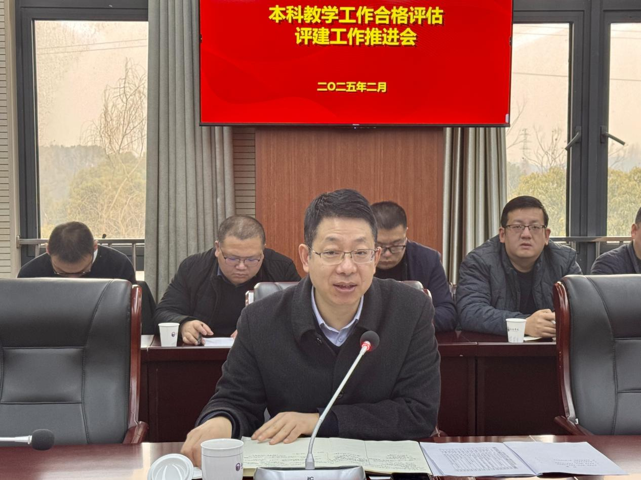 为全面推进本科教学合格评估评建工作提质增效,我校于2月25日上午在行政楼327会议室召开本科教学工作合格评估推进会。校长孙雁飞、副校长曹广喜出席会议,各评建工作小组组长、二级学院相关负责人及教师发展与教学评估中心有关人员参加会议。会议由副校长曹广喜主持。