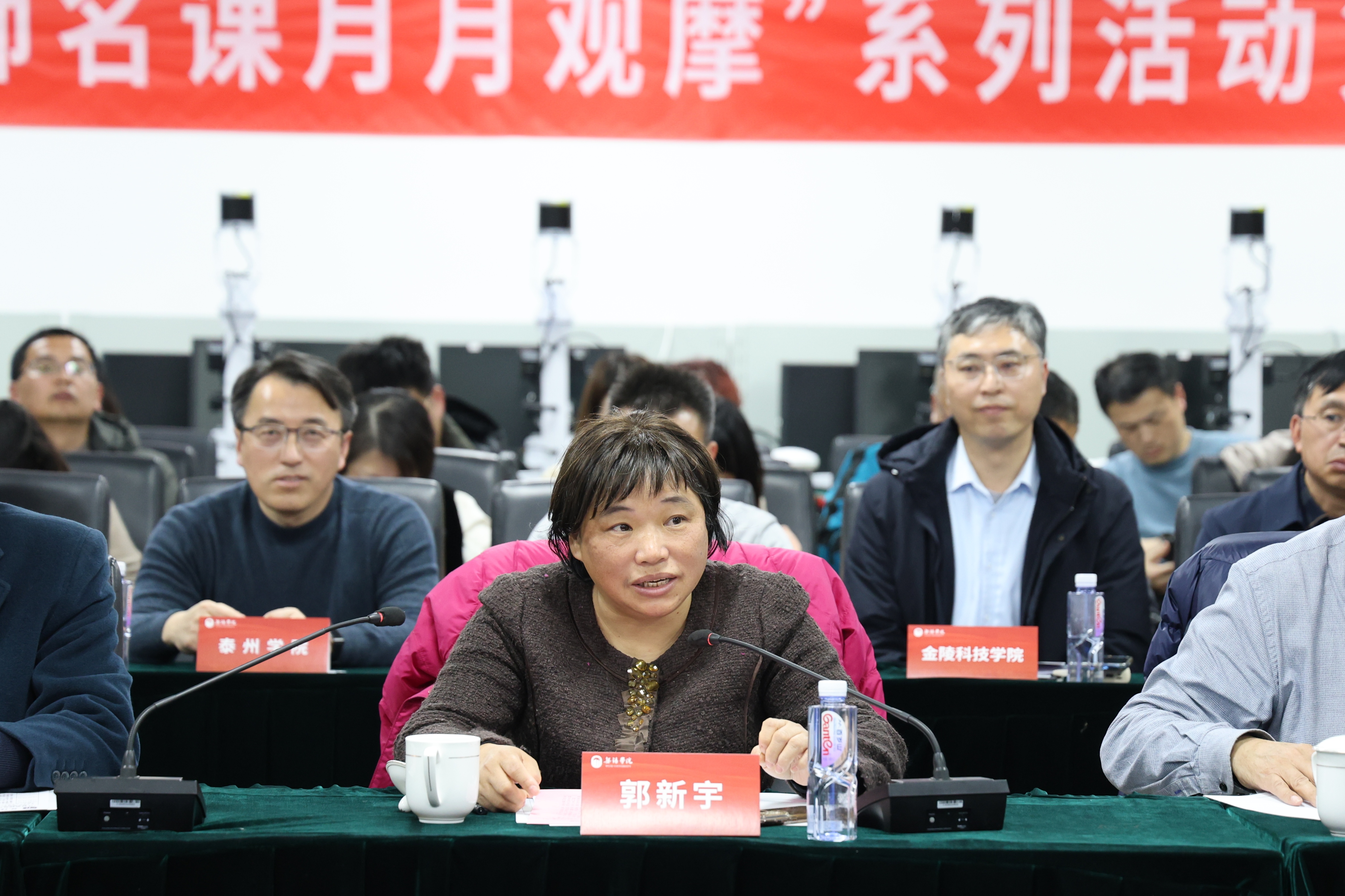 郭新宇作总结讲话。她充分肯定了学校在产科教融合人才培养中取得的成效,感谢无锡学院对本次活动的精心组织,期待更多高校能通过“江苏高校名师名课月月观摩”平台积极分享产教融合的鲜活经验与创新做法,凝聚育人合力,共同推动江苏高校应用型人才培养质量迈上新台阶。